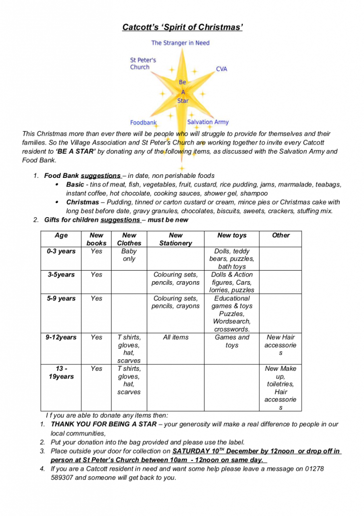 Don’t forget to put out your donations by 12 noon on Saturday 10th December or drop them off at the Church between 10 and 12 on the same day.