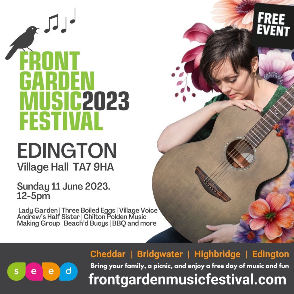Bands and groups playing include Lady Garden, Three Boiled Eggs, Village Voices, Andrew’s Half Sister, Chilton Polden Music Making Group & The Beach’d Buoys