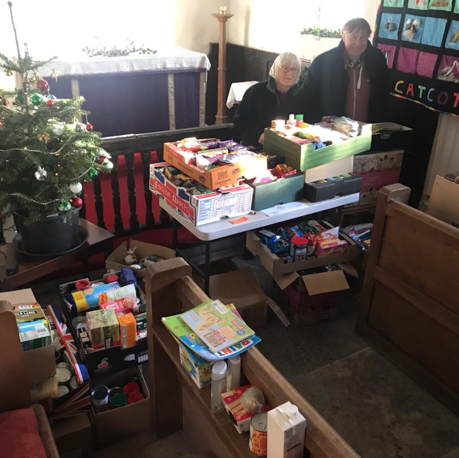 A big thank you to all who donated bags of goodies for the Catcott Spirit of Christmas appeal. We estimate that over half of the households in the village have donated food, toiletries and toys, games and drawing materials. Half of the food and toiletries are going to the Bridgwater Food Bank and the other half plus the toys, games and drawing materials are going to the Salvation Army in Street. Your donations will make a real difference this Christmas.